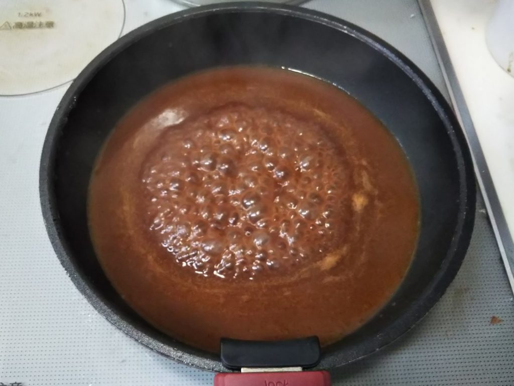 11. ソースを鍋に戻し、クレーム・ド・カシスを加え、塩、胡椒。ハチミツで味を調える