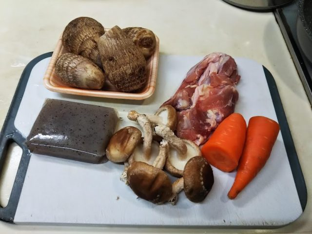 1. 里芋は3㎝位に切り、鶏肉は一口大に切る