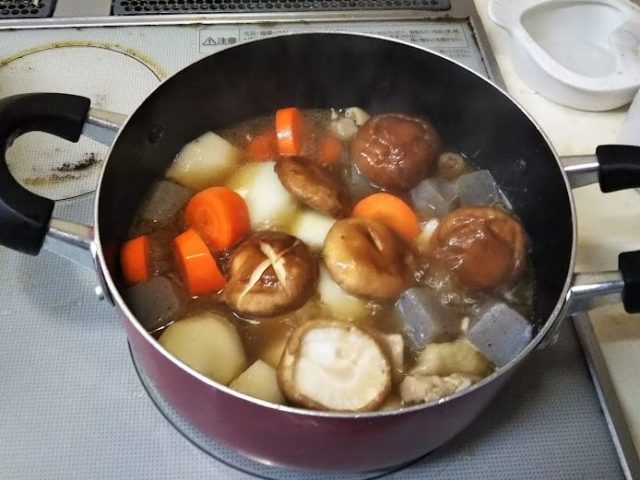 6. 人参と椎茸を入れて弱火でコトコト煮込む