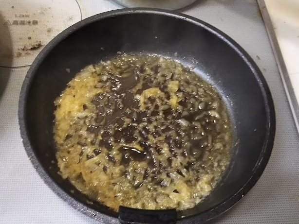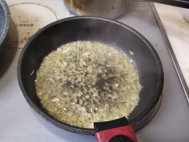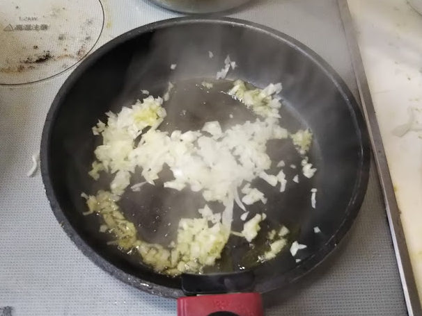 5. フライパンの汚れを拭って、必要なら油を足して、玉葱を炒める