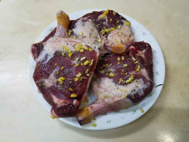 2. 解凍した鴨肉に1.の調味料を全面に擦り込むように塗り、ラップにくるんで1晩冷蔵庫に寝かせる