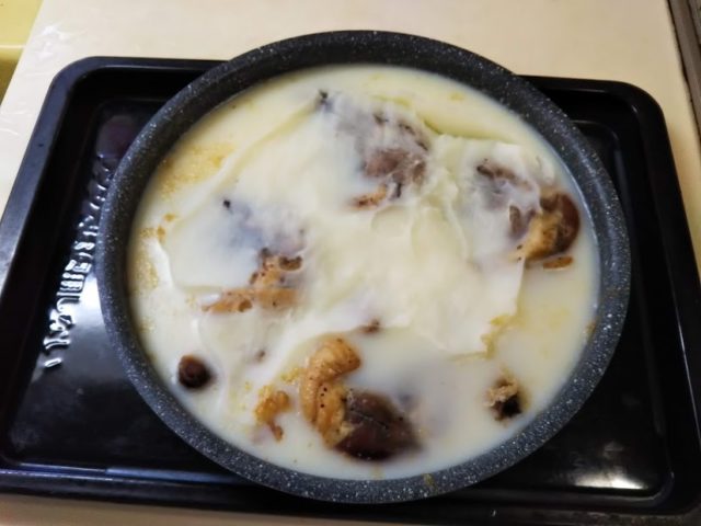6. 加熱が終わったらそのまま常温に置く。冷めると脂が固まる