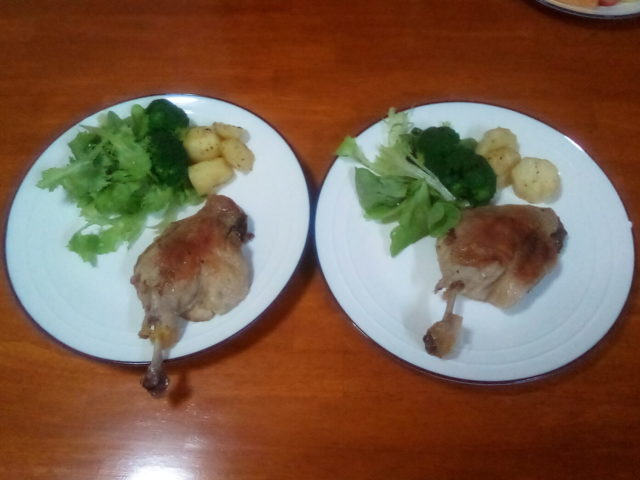 クリスマスなので、鴨のもも肉とカナールオイルを取り寄せてコンフィを作ってみました。付け合わせは残った脂を再利用してポテトをあげて、煮凝りを入れたコンソメも添えました。