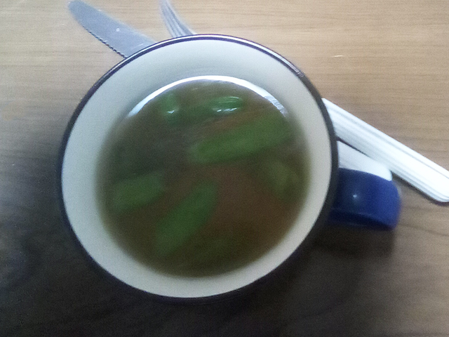 2. 今回はたまたまあったスナップエンドウを入れましたが、他の野菜でも、何もいれなくても鴨の香りが残って美味しいと思います。