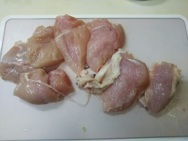 1. 鶏肉は包丁で削ぎ切りにしておく
