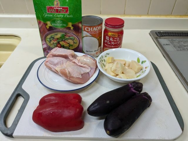 タイのグリーンカレーを作ってみました。できればペーストを使わないで作ってみたかったのですが、最初なのでペーストを使ってみましたが、これだと日本風のカレーよりも簡単です。そのうちスパイスだけでやってみたいです。