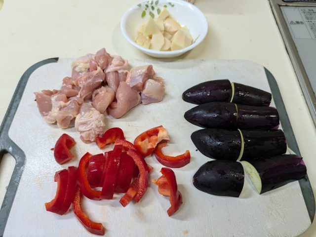 1. 鶏肉と野菜をそれぞれ好みの大きさに切る