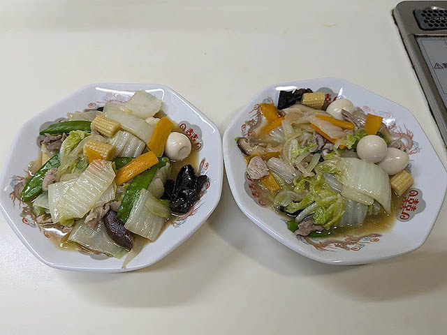 おなじみの中華料理です。ご飯の上にかければ中華丼、ラーメンにのせれば五目ラーメンになりますね。醤油やオイスターソースを入れて濃いめに味付けるレシピもありますが、我が家はあっさり塩味です。