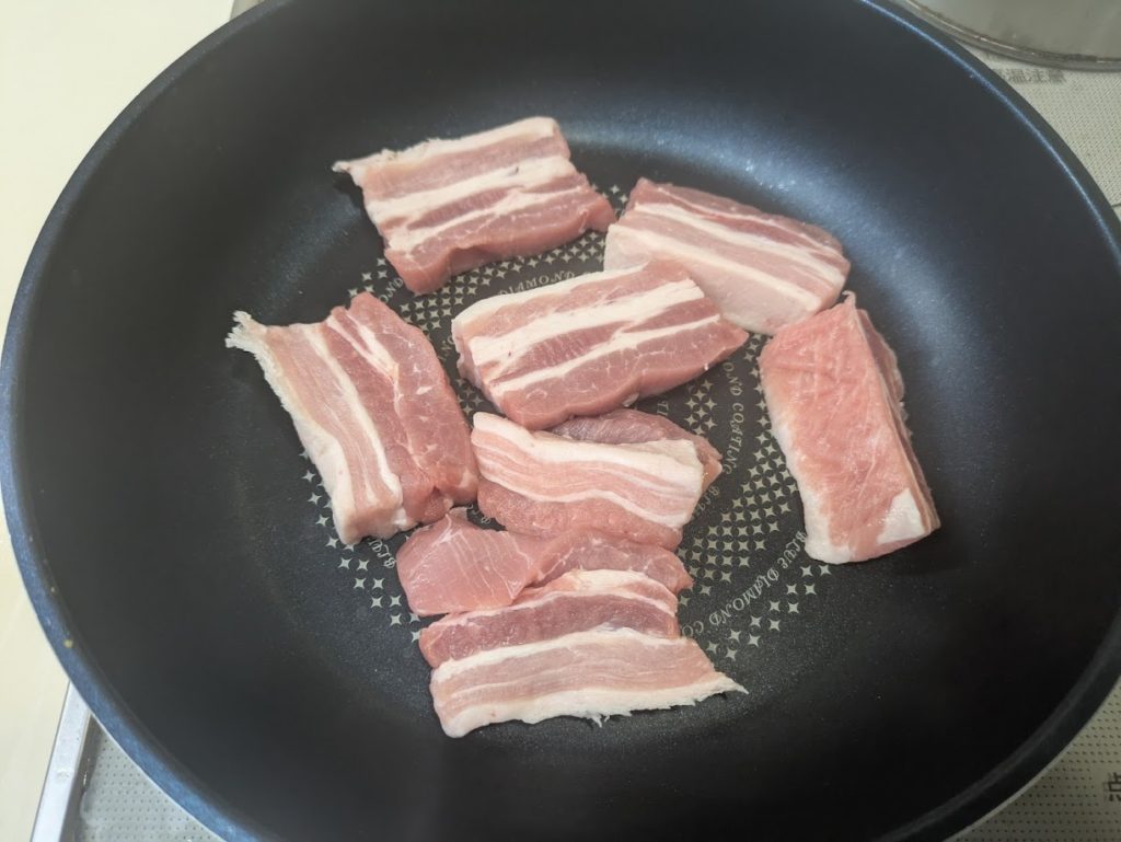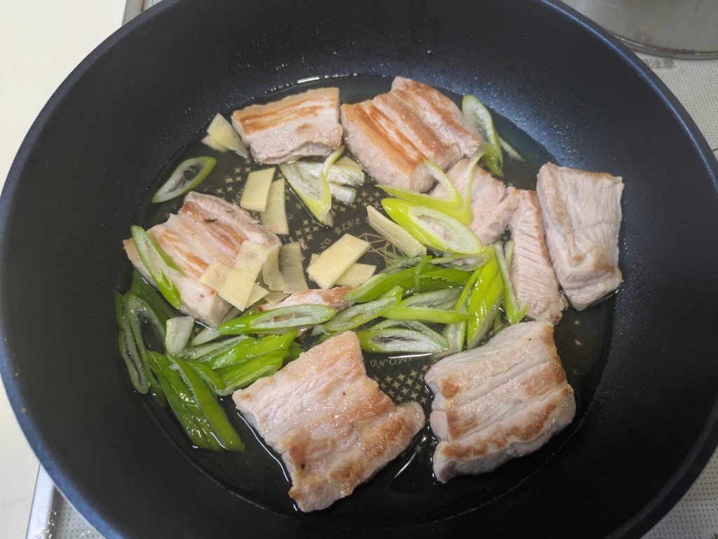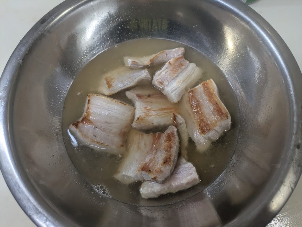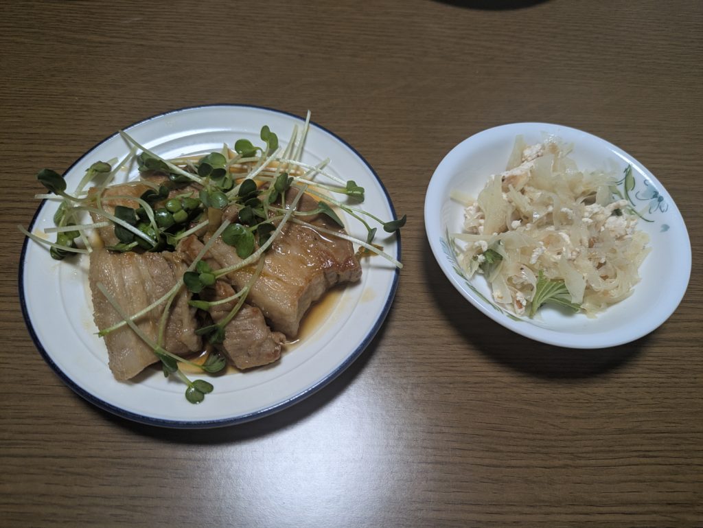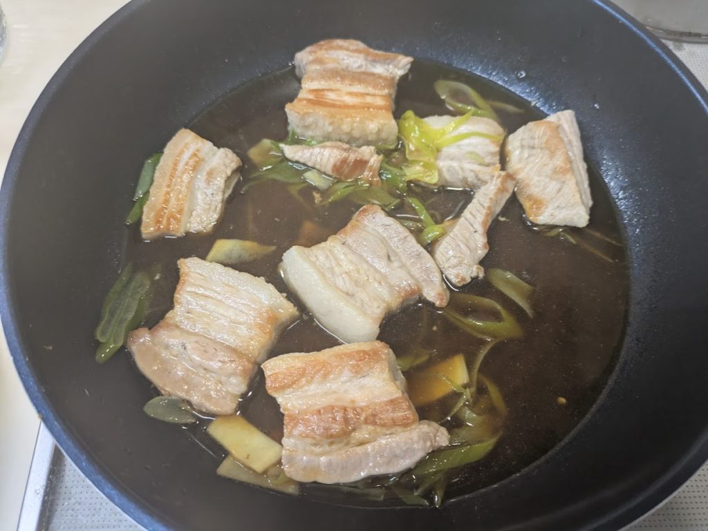 リモートシェフから村田明彦シェフの肉感MAX噛み締め豚角煮を作ってみました。ポイントは先にカットすることで煮込み時間を短くすることでしょうか。