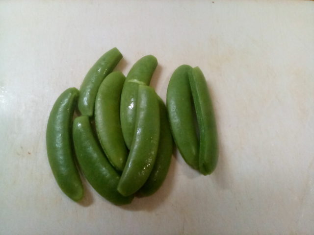 6. 煮ている間にスナップエンドウを洗って筋を取っておく