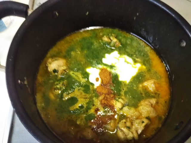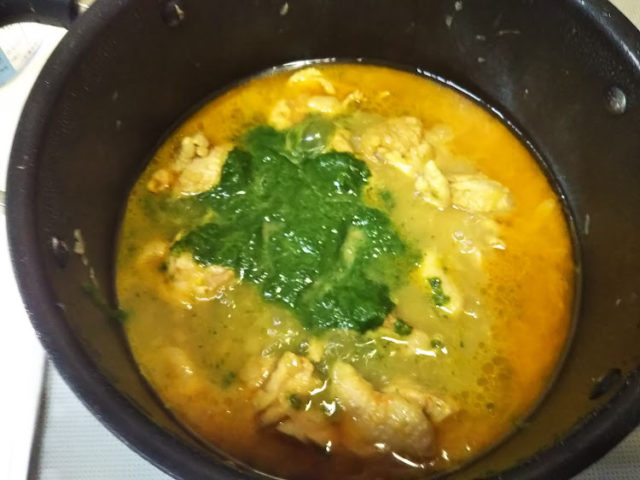 ほうれん草を使ったインドのカレーです。一般にほうれん草のカレーをサグカレーと言いますが、サグはからし菜のことで、ほうれん草はパラクと言うそうです。詳しくは、インド人シェフのブログをご覧ください。