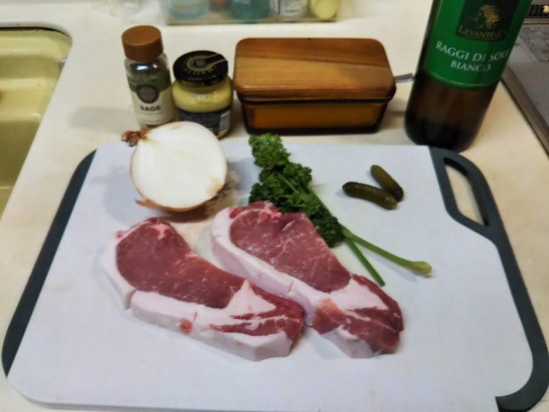 1. 玉葱とニンニクは薄切り、パセリとセージは微塵切りに切っておく