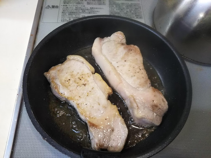 3. 豚肉を両面食べられる位に焼けたら一旦皿に移す