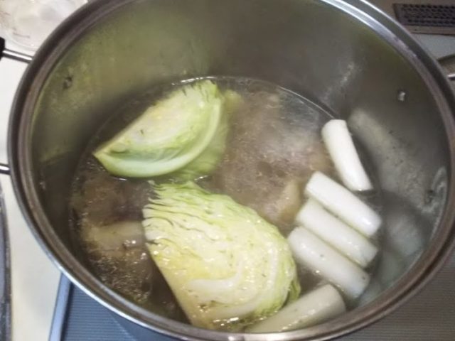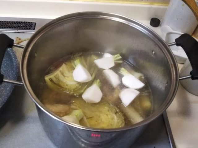 4. スープが煮立ったら蕪以外の野菜とスープの素を入れて弱火で約1時間煮込む