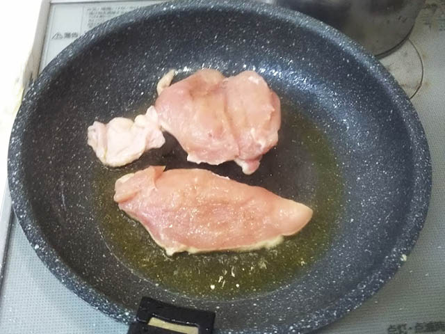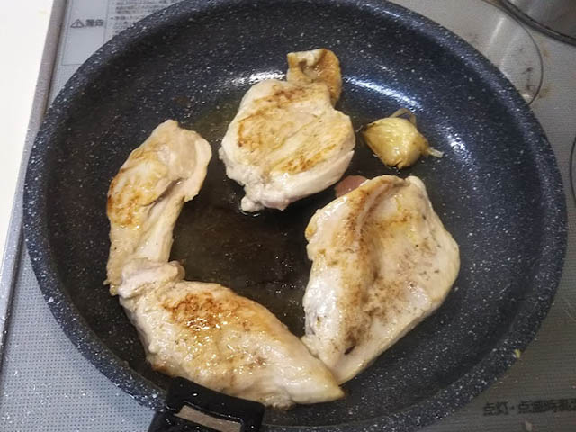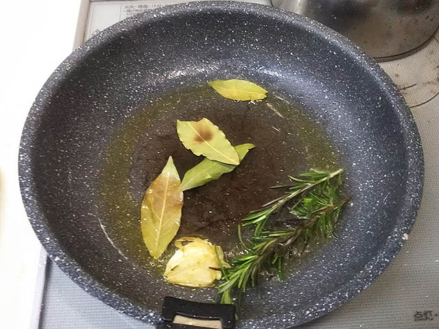 鶏胸肉をハーブで香りづけたオイルで焼く、シンプルな料理です。参考にしたレシピではローレル、ローズマリー、タイムで香りづけするのですが、タイムがなかったので2つのハーブだけで焼きました。焼き方ももっと細かく載っていたのですが…要点のみ書いてます。味付けは塩だけなのに、ハーブの香りでとっても美味しくいただけました。
