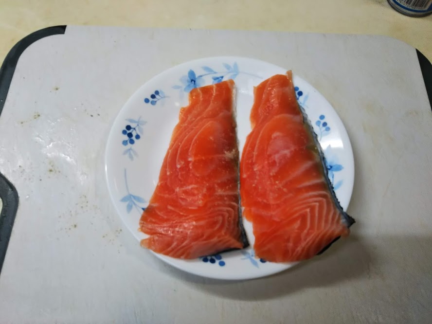 1. サーモンは塩を振って10分位おいておく。水分が出てきたらキッチンペーパーで拭く