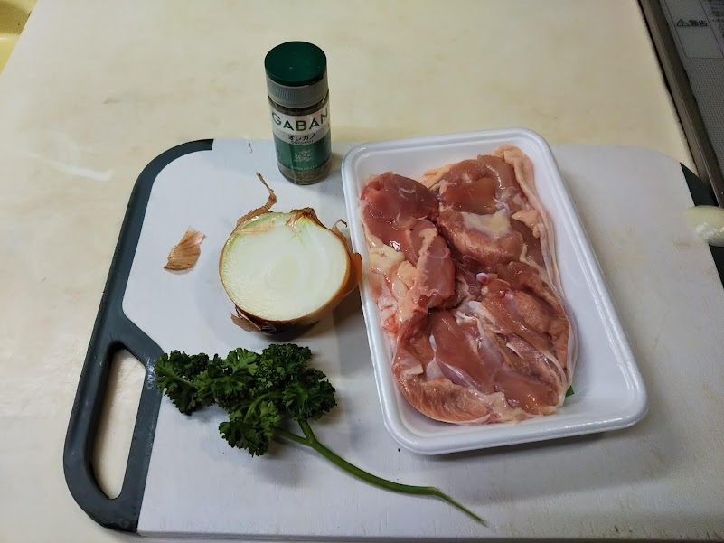 1.鶏肉は軽く塩・胡椒して、オレガノをまぶしておく