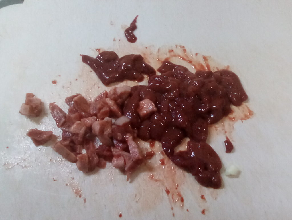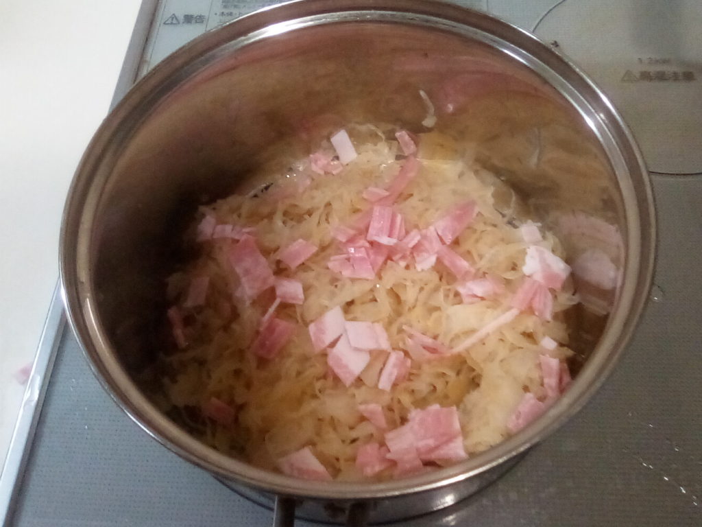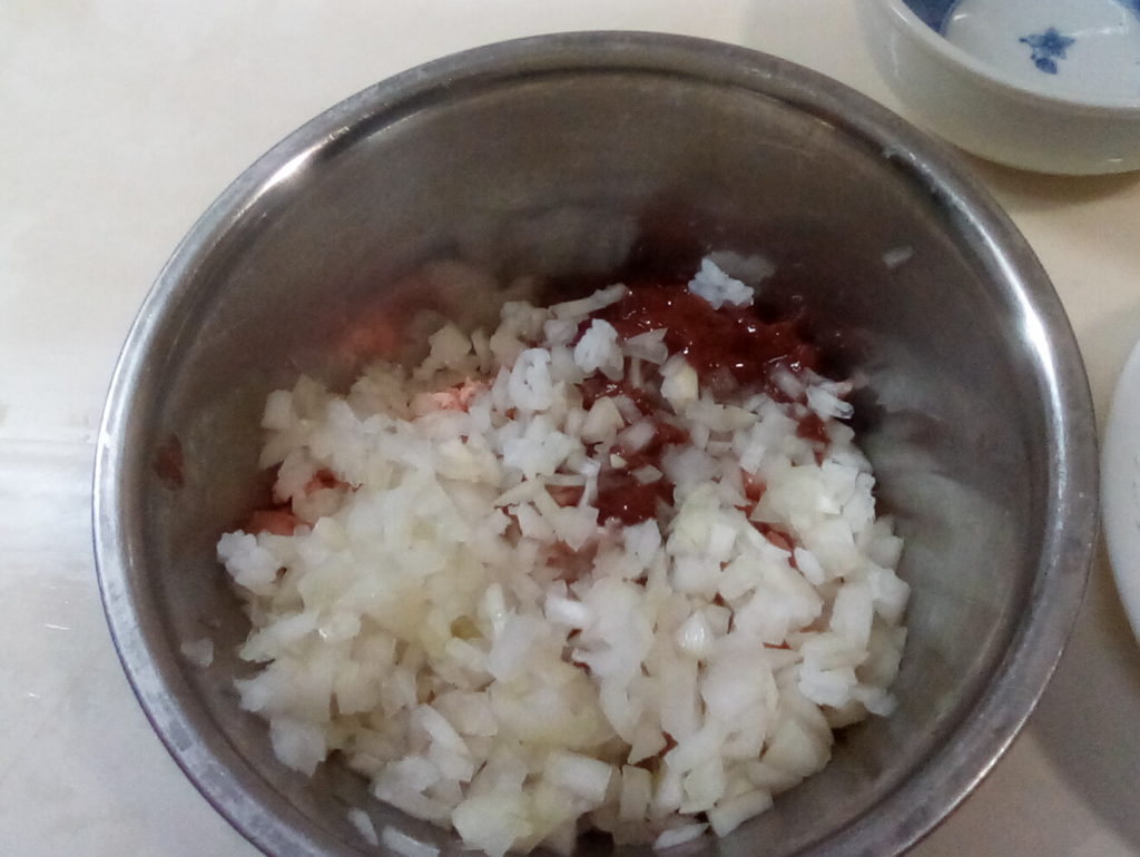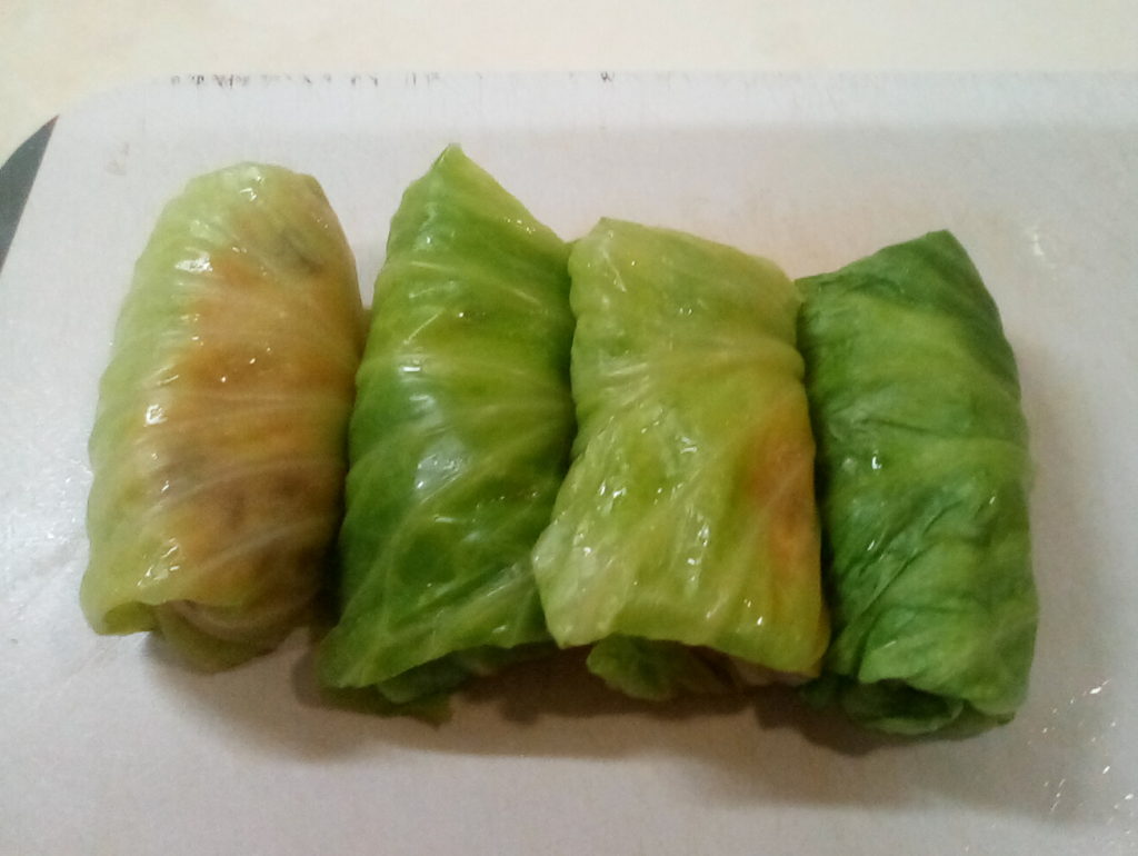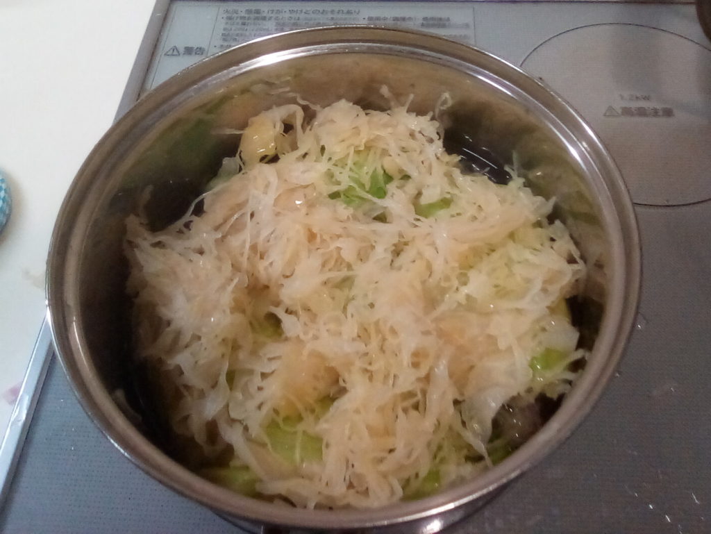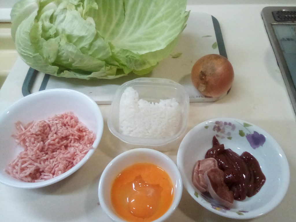 グンデル・レシピによると、ザワークラウトと一緒にレバーなどの豚肉の内臓を一緒に鍋に入れて煮込むのだそうです。日本のお肉屋さんにはレバーはありますが、他のものはそろわないので、レバーとタンを刻んで具の中に一緒に詰めてみました。これもハラ―スレーと同じでハンガリーの人から突っ込まれてしまうかもしれませんが…気分で(笑)