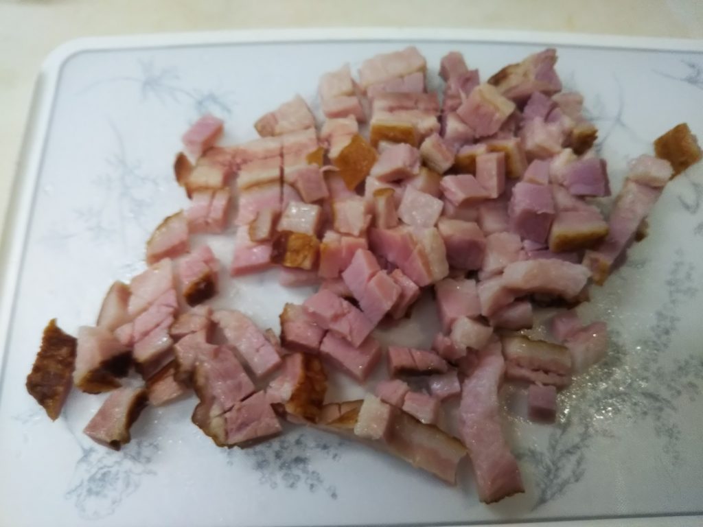 3. ベーコンを5㎜から1㎝程度に切り揃え、再び鍋に入れる。塩・胡椒で味を調える