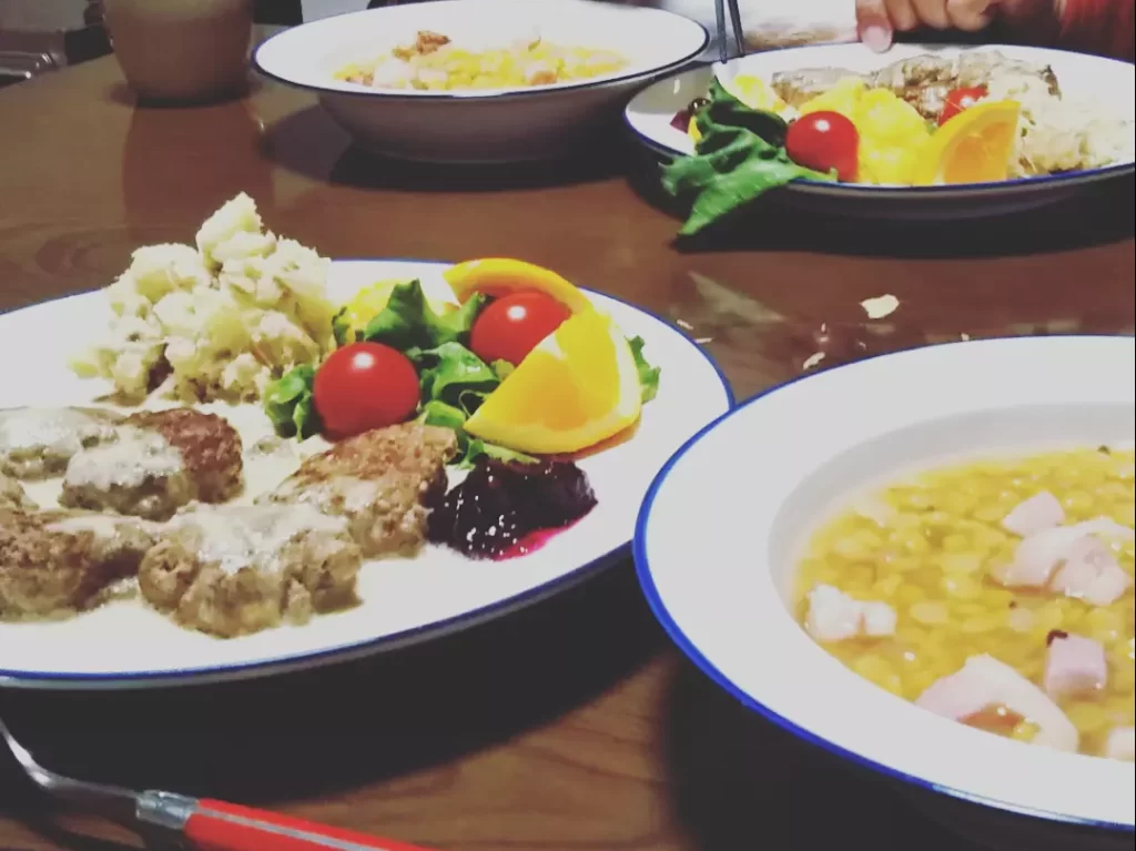 スウェーデンやフィンランドで食べられている黄色いエンドウ豆を使って作ったスープです。スウェーデンでは毎週木曜日にパンケーキとこのスープが食べられるという習慣があったようです。今でも学校などでは木曜日に豆のスープを給食に出すところもあるようです。参考にしたレシピは三田陽子著『北欧のおやつとごはん』からスウェーデンの豆のスープです。