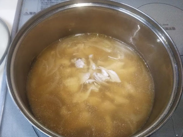 お米とレモンの入ったポルトガルのチキンスープです。ギリシャのコトスバ・アブゴレモノに似ていますが、こちらのほうがさっぱりとしています。レモンの酸味が効いて夏に合うスープです。レシピは丹田いづみ著『家庭で作れるポルトガル料理』(河出書房新社)を参考にさせていただきました。かなり省略してしまってます(笑)