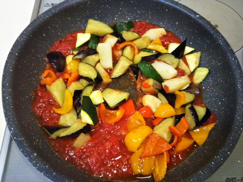 イタリアのラタトゥイユ、チャンボッタを作りました。よく似たものにカポナータがありますが、カポナータは甘みを加えたり松の実やアンチョビを加えたり「これぞイタリア!」といった趣があって割と凝っているのですが、チャンボッタはもっと素朴です。特徴としては野菜を揚げてから煮込むことと、じゃがいもが使われるレシピがしばしば見られます。