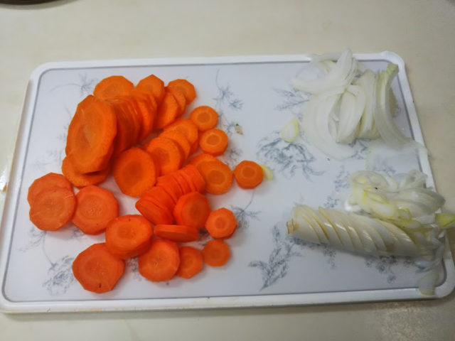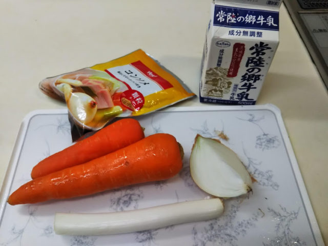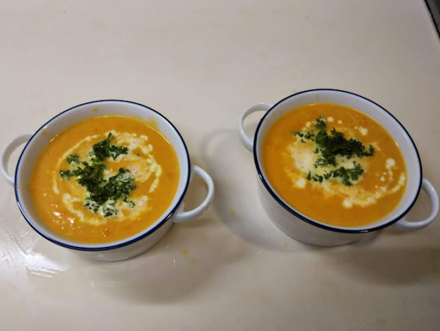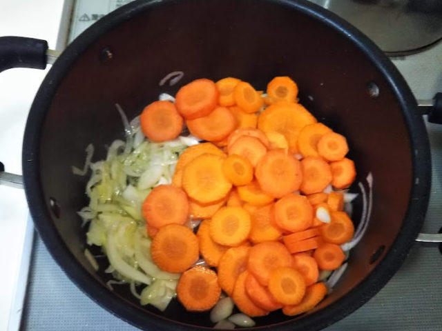 ポルトガル風の人参のスープです。フランスやイタリアの人参スープと基本は一緒ですが、玉葱だけだなく長葱も一緒に入れるところが少し特徴といえば特徴です。レシピは丹田いづみ著『家庭で作れるポルトガル料理』(河出書房新社)を参考にさせていただきました。