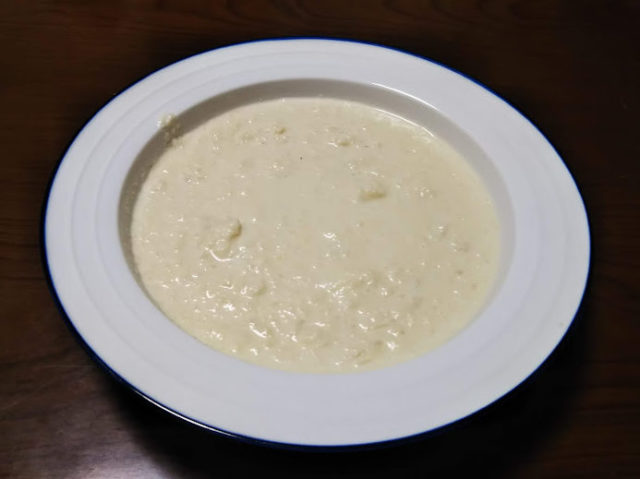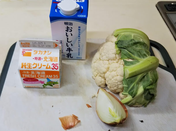 『ビストロ・パ・マルのレシピ帖』からカリフラワーのポタージュを作ってみました。ちょっと濃かったかな?それとハンディーブレンダーを使いましたが、このスープはミキサーにかけたほうがよかったかもしれません。
