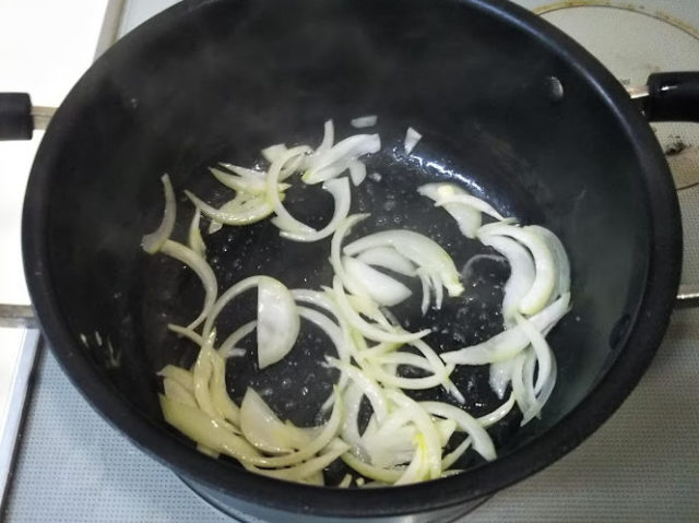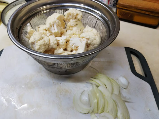 1. カリフラワーは洗って小房に分ける。玉葱は薄切りにする