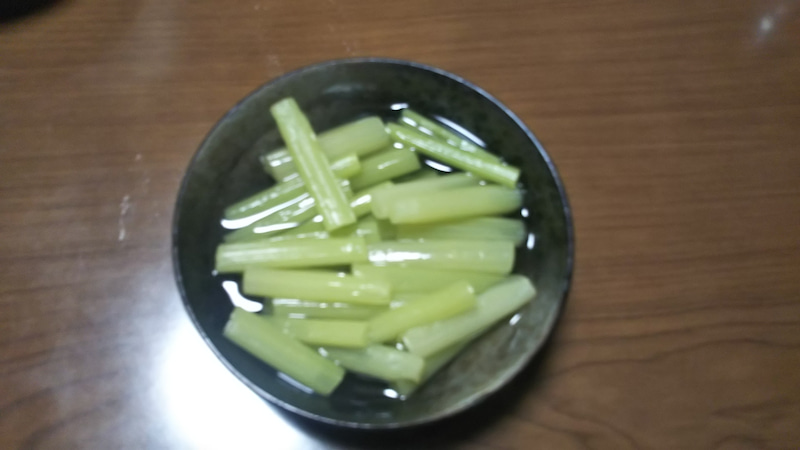 澪が妹弟子のフキちゃんの名前にちなんで作ってあげた蕗の青煮。醤油で甘辛く煮込むのも美味しいけど、青煮にすると蕗の渋さが際立って意外に美味しいんです。