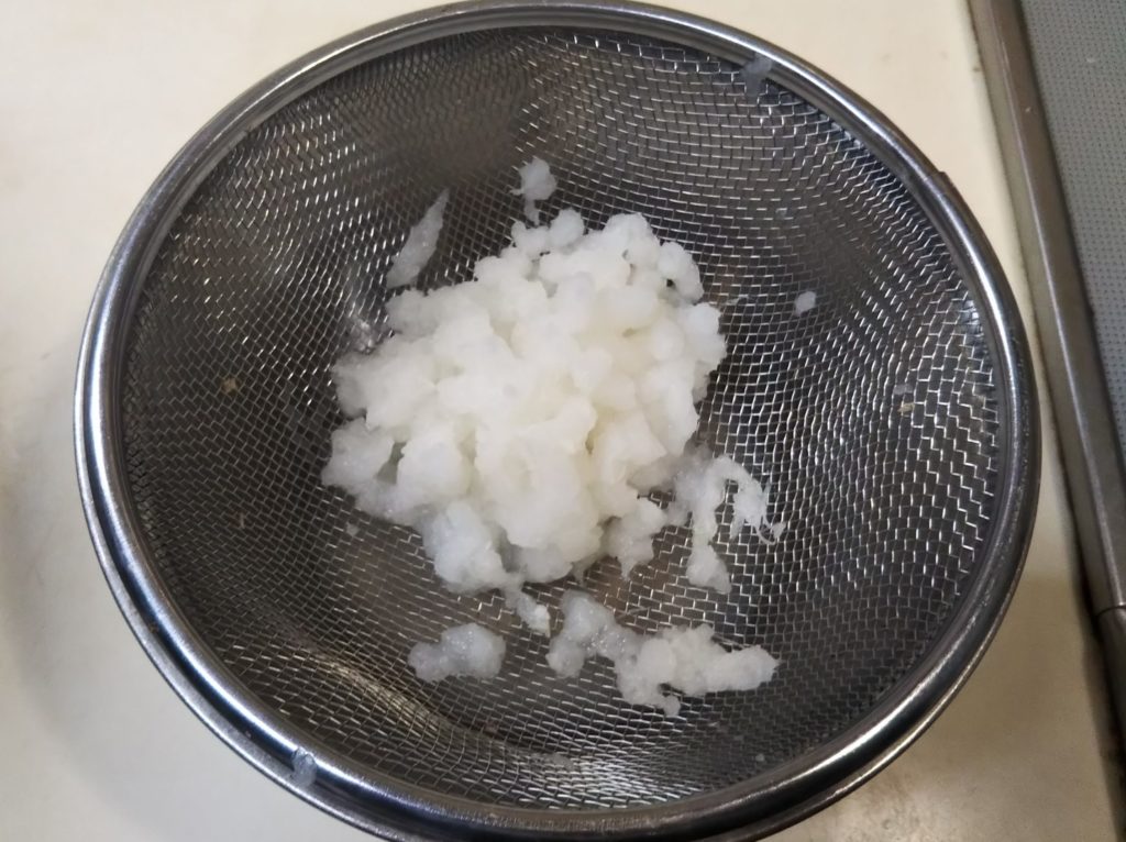 2. 蕪は皮を剥いて摺り下ろしてザルに開ける