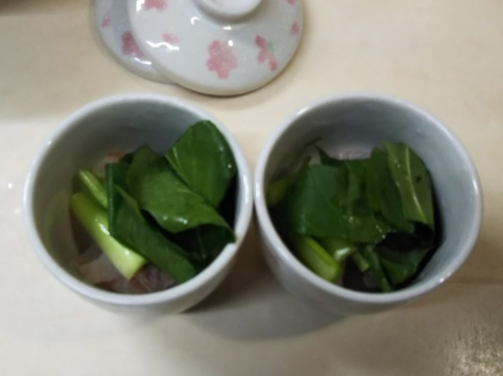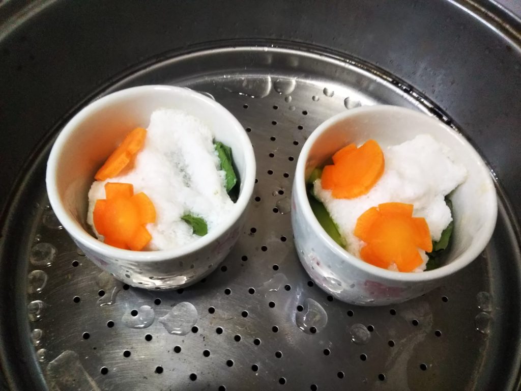 レシピはkikkomanさんの白身魚のかぶらむしを参考にさせていただきました。中に入れる具材は白身魚は鱈を使い、野菜はきのこなどを使っているレシピが多かったのですが、有り合わせで小松菜を使用しました。人参はへたくそだけどお花の形に切ってみました。別に形をつけなくてもいいと思います。
