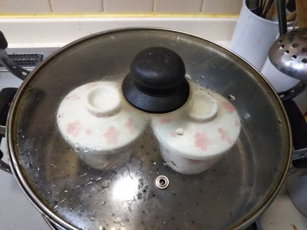 11. 茶碗蒸しの蓋をして、沸騰した蒸し器に入れる