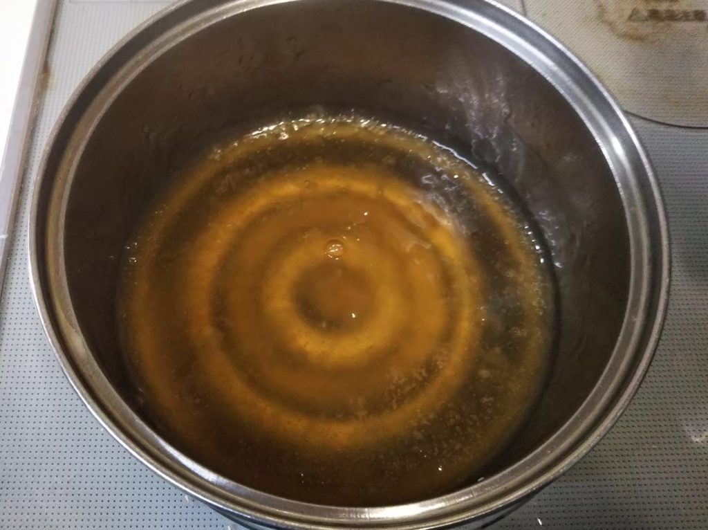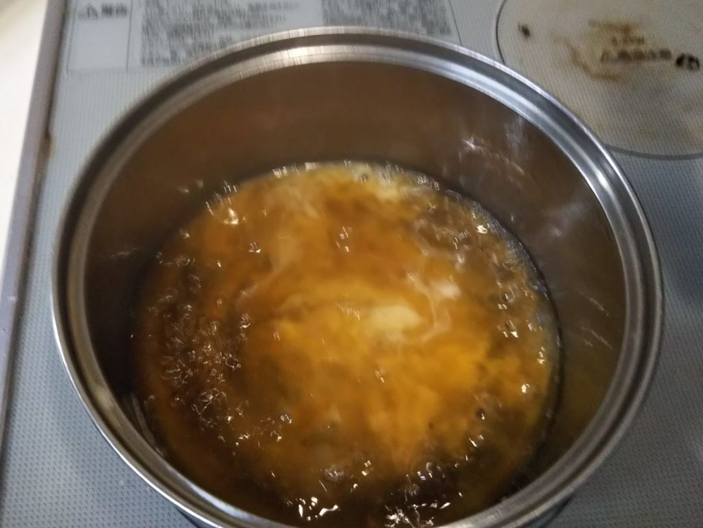 14. コーンスターチ大匙1を水大匙1で溶いて、だし汁の中に加えて混ぜる