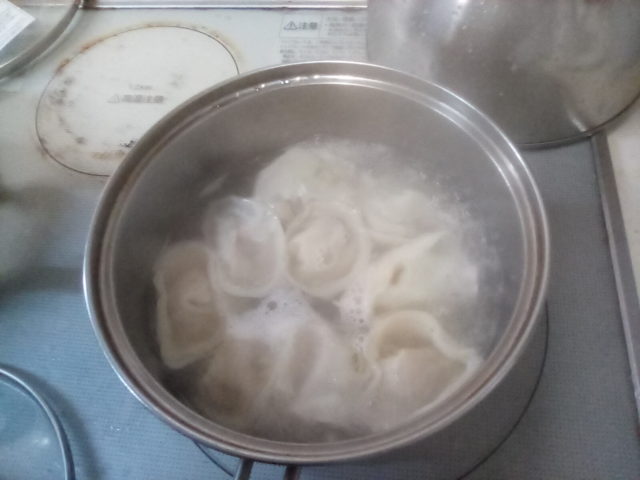 アレンジメニューです。挽肉の代わりにツナを使ったペリメニを作ってみました。本来ペリメニは卵を加えて作った皮を使用しますが、手軽に餃子の皮で作りました。