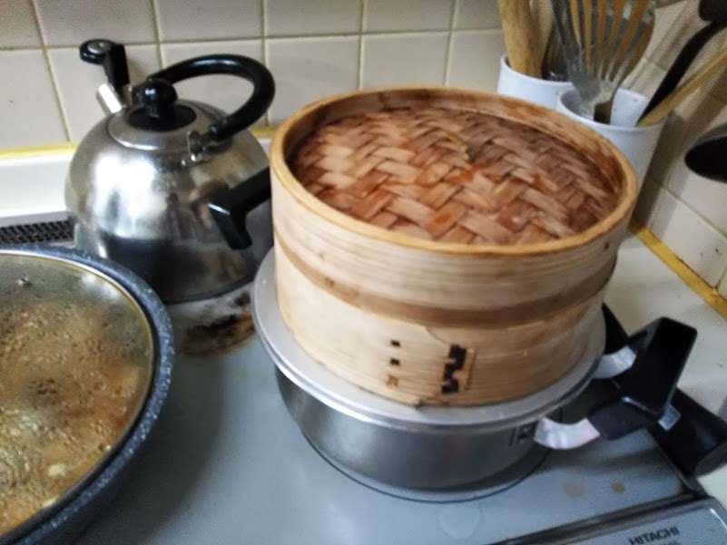 9.翌日、蒸篭で残りの焼売を蒸かす