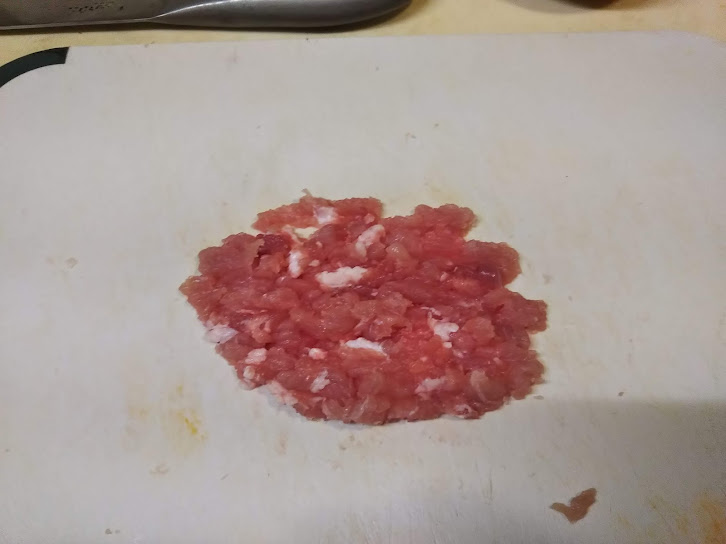 1.豚ロース肉は細かく叩く