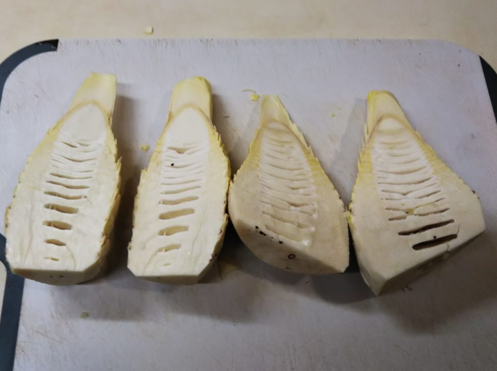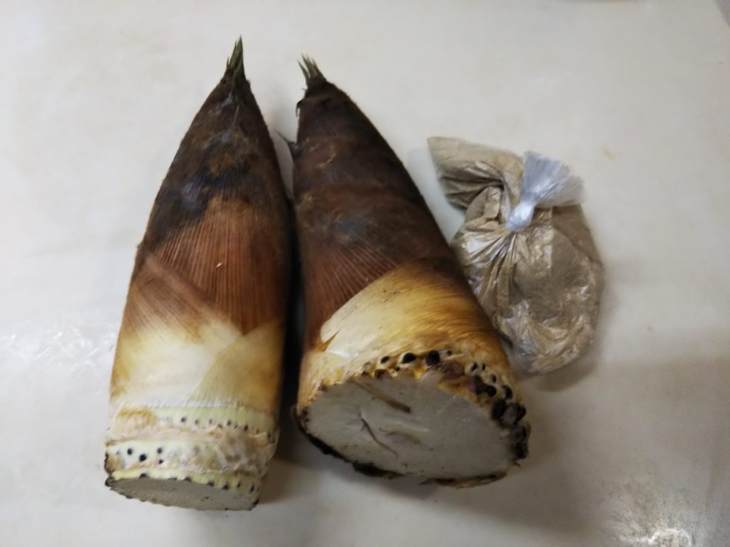 1. 筍は皮を剝いて2つまたは鍋に入れやすい大きさに切る