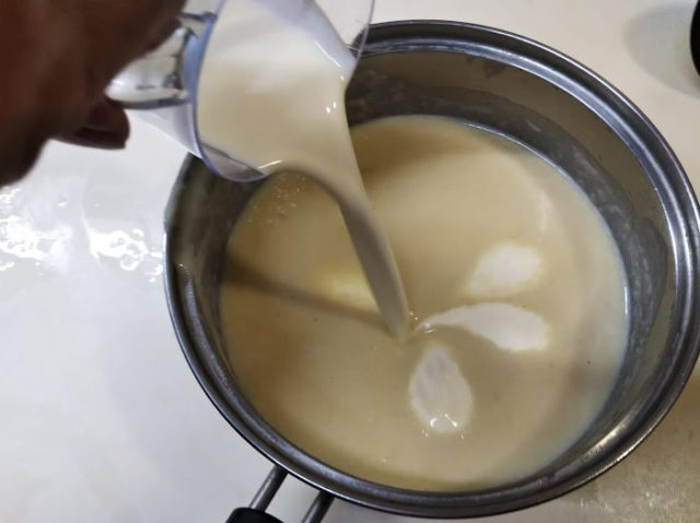 11. 食べる直前に冷蔵庫から出して生クリームを加える。ここで塩が足りなければ足す