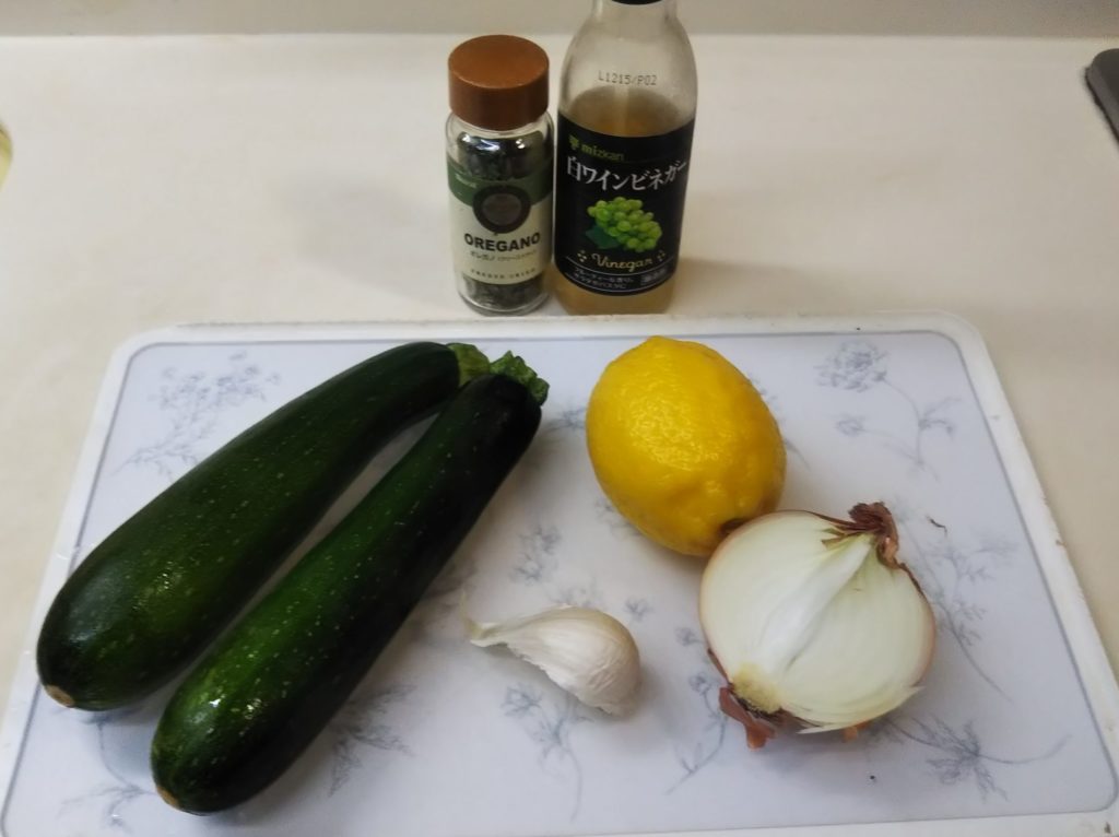 1. ズッキーニは1.5㎝厚さの輪切り、または半月切り、玉葱とニンニクは微塵切りにする