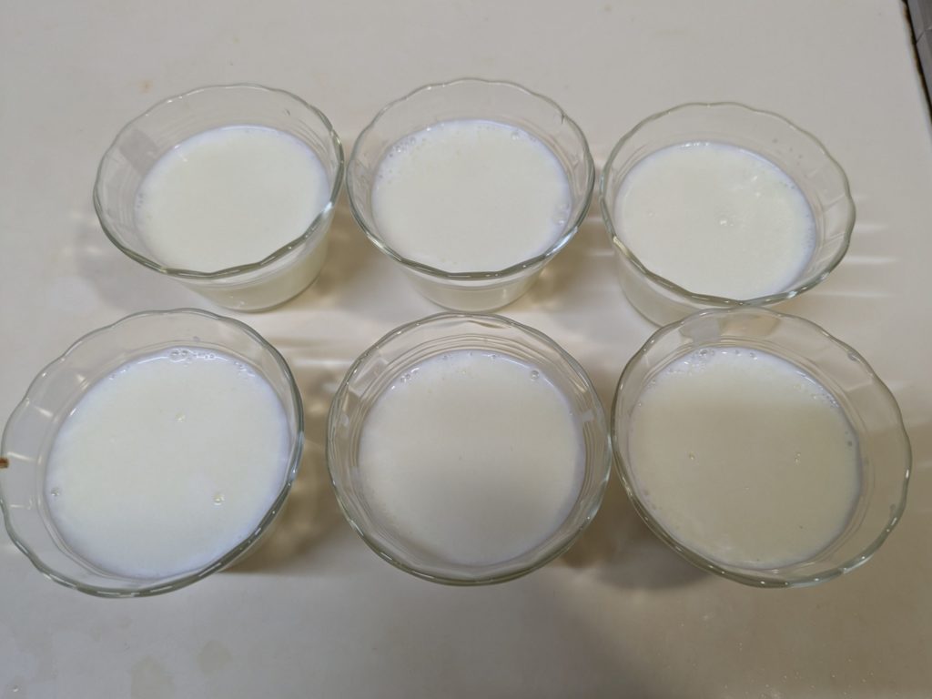 1. パンナコッタを作ってガラスカップなどそのまま掬って食べられる容器に流し入れ、冷やし固める。