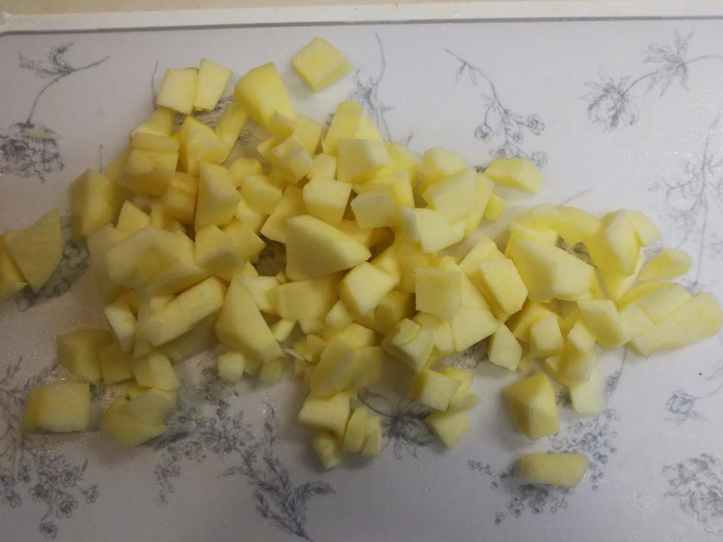 2. リンゴは5㎜から1㎝位のサイコロ切りにする