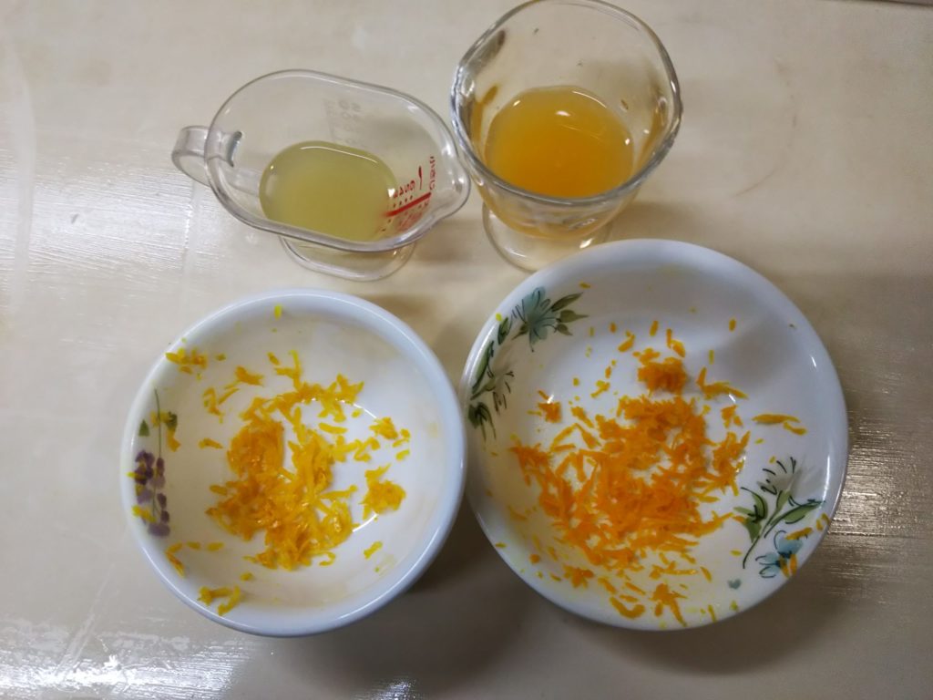 3. レモンとオレンジは果汁を絞り、皮をおろしておく