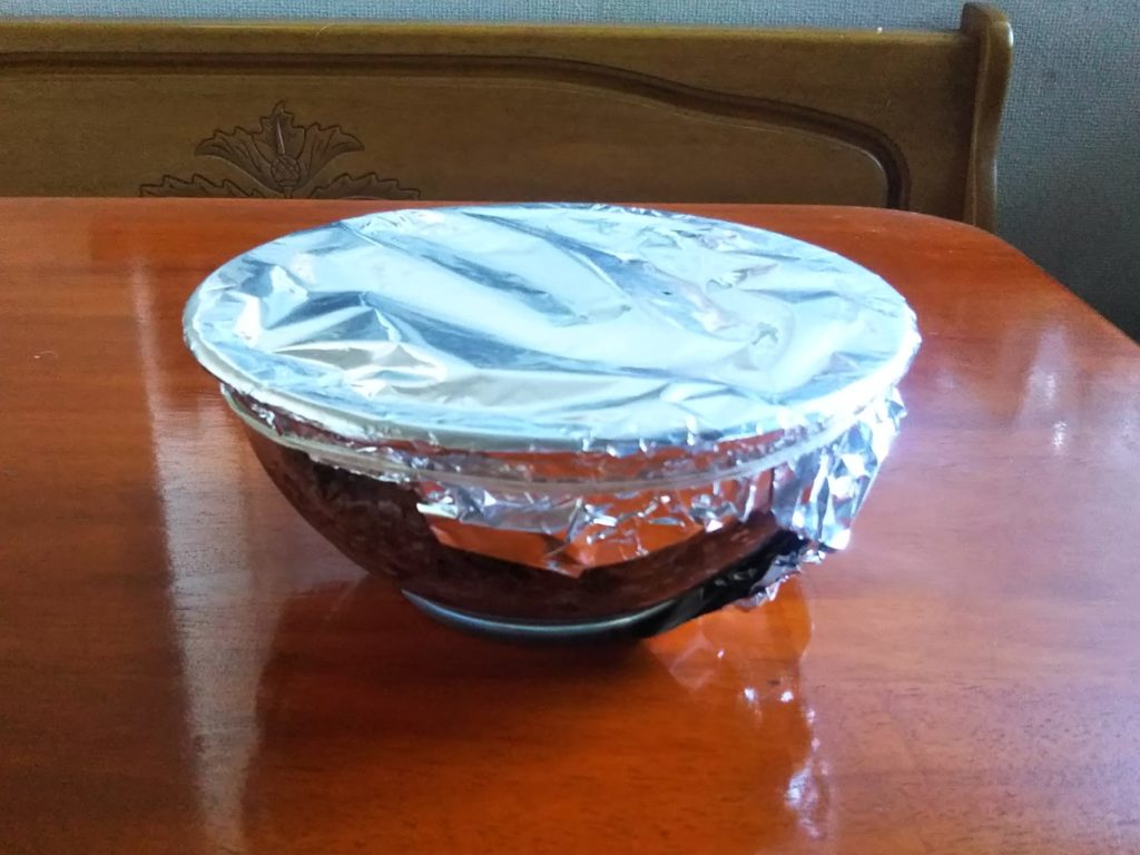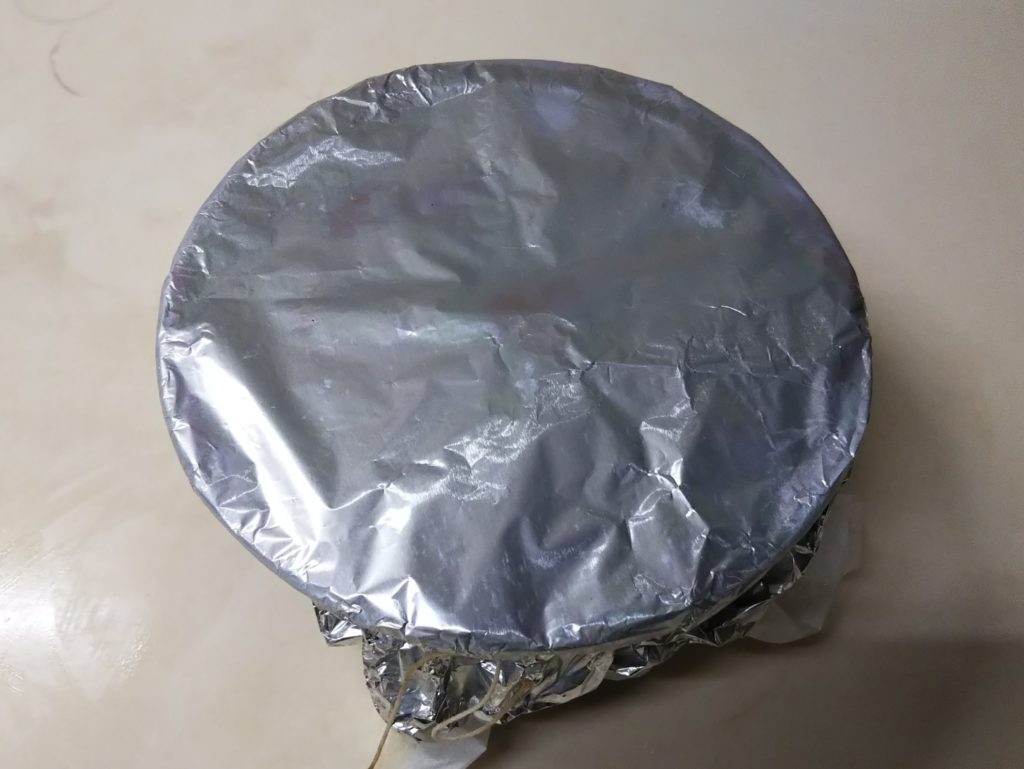14. 再びクッキングシートとアルミホイルで覆い、冷蔵庫に入れて保存します。通常1カ月位保存するそうですが、開封しなければ1年位持つそうです。