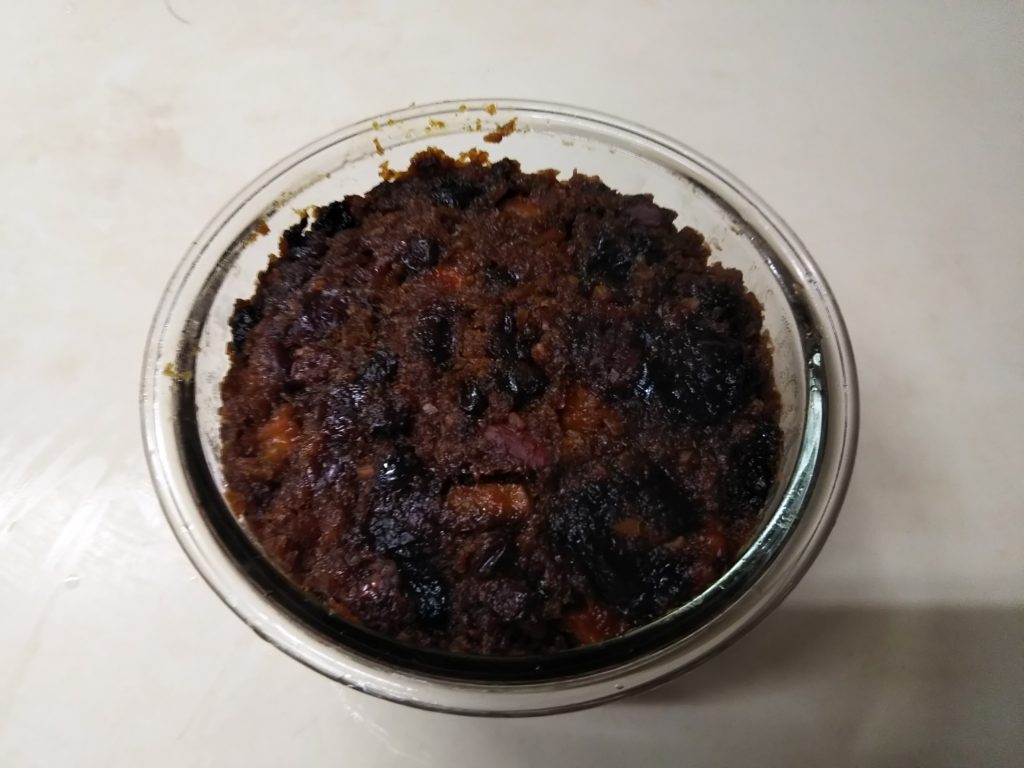 英国伝統のクリスマスプディングです。実は私は毎年クリスマスプディングを作るのですが、バターを使ってオーブンで焼いたほぼフルーツケーキといった代物でした。今年は牛脂を仕込んだので、かなり本格的に出来たと思います。レシピは英国の口福を探してを参考にさせていただきました。プディングの蒸し時間はなんと!8時間が定番のようです。ただ、YouTubeなどでクリスマスプディングのレシピを見てみたら、4時間でもいいそうです。結果的に私は5時間蒸しました。また生地の半分をオーブンでも焼きました。