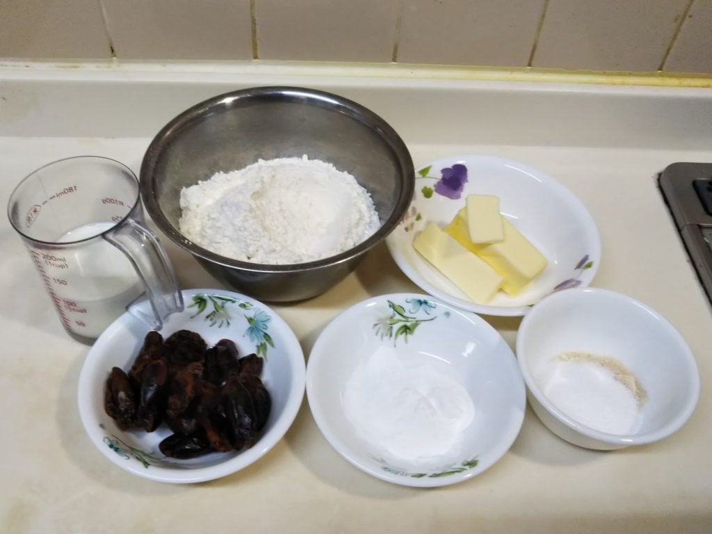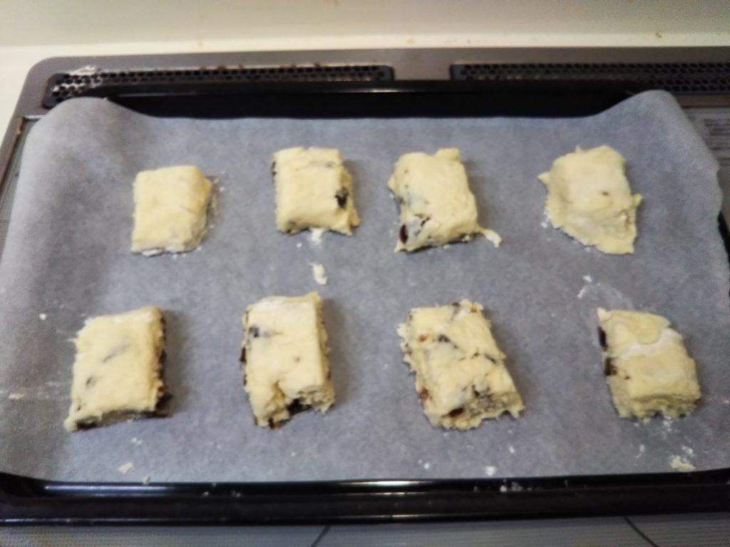 ニュージーランドで食べられているデーツのスコーンを作ってみました。ニュージーランドのスコーンの特徴はナイフで四角く切り分けて焼くこと。英国風に丸いスコーンももちろん存在しますが、この四角い形もまた面白いなと思います。中に入れる具はデーツがポピュラーなようです。プルーンやレーズンなどドライフルーツはお菓子作りによく使いますが、デーツはそのまま食べてもあまりおいしいと思えず、ついつい敬遠してしまいますので、こういう使い方もいいなと思いました。