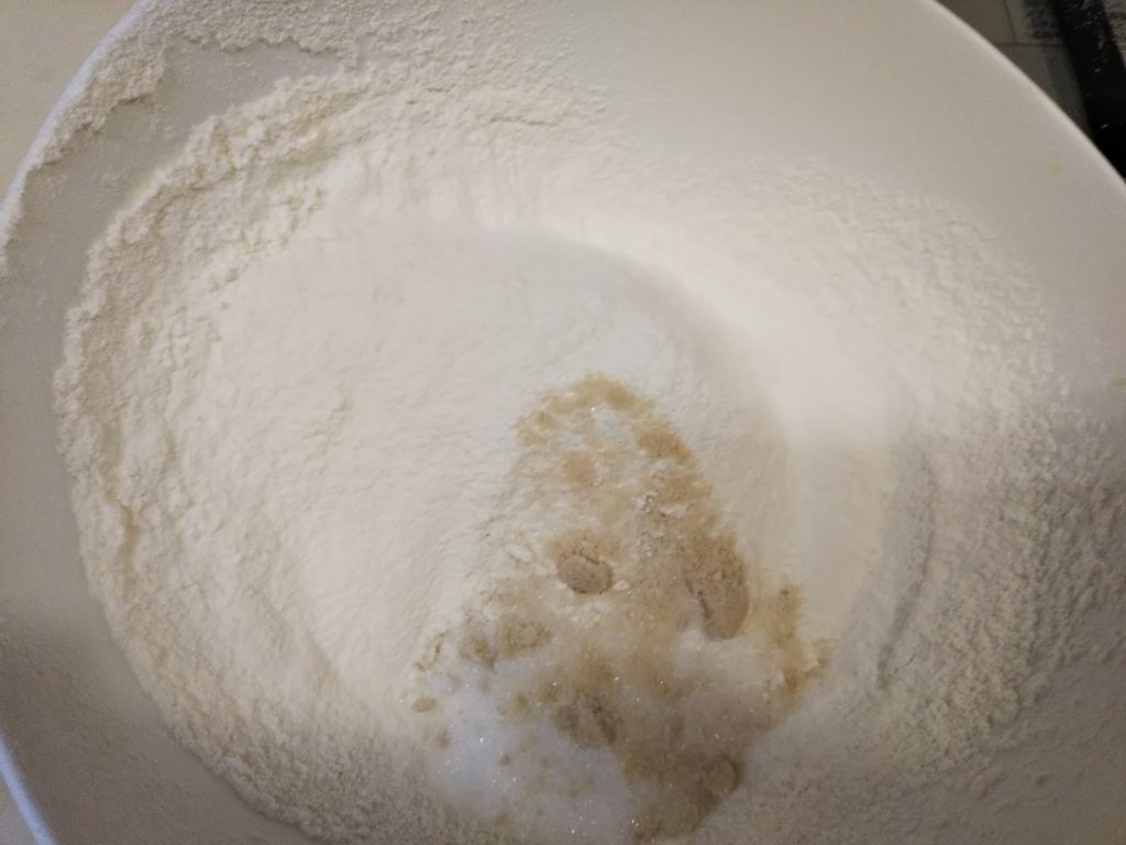 3. 2.の粉の中に砂糖と塩を加えて、まんべんなく混ぜる