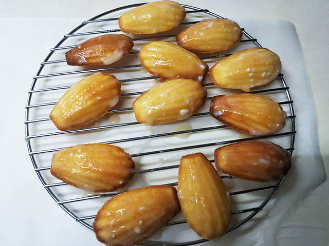 今回、生活の木で売られていたエルダーフラワーのコーディアルを加えたアイシングを塗りました。それを塗らなければ、本当にプレーンのマドレーヌです。コーディアルはIKEAのほうが安いのですが…買いに行く手間を考えて、仕事場の近くにある生活の木で調達しました。