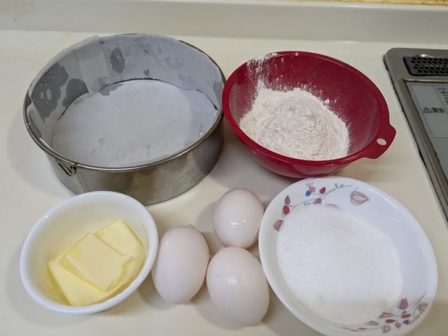 1. 直径18㎝のスポンジを焼き、出来上がったら網の上で冷ます。スポンジの作り方はこちら→