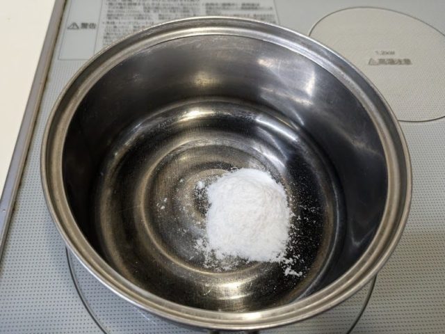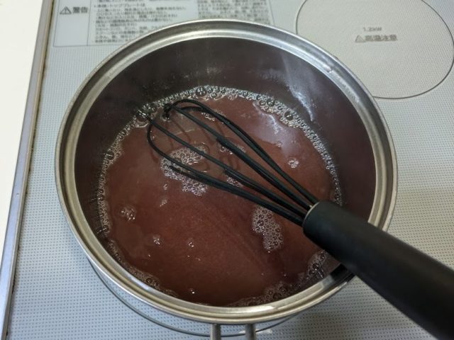 9. 鍋に水とアガーを入れてよく混ぜ合わせる
